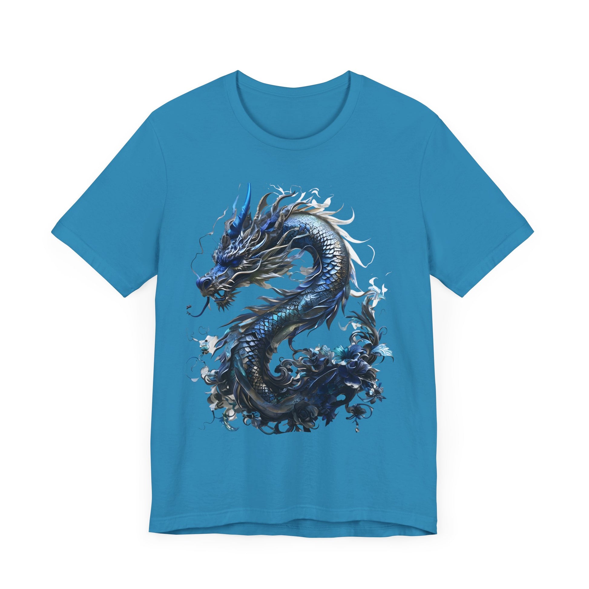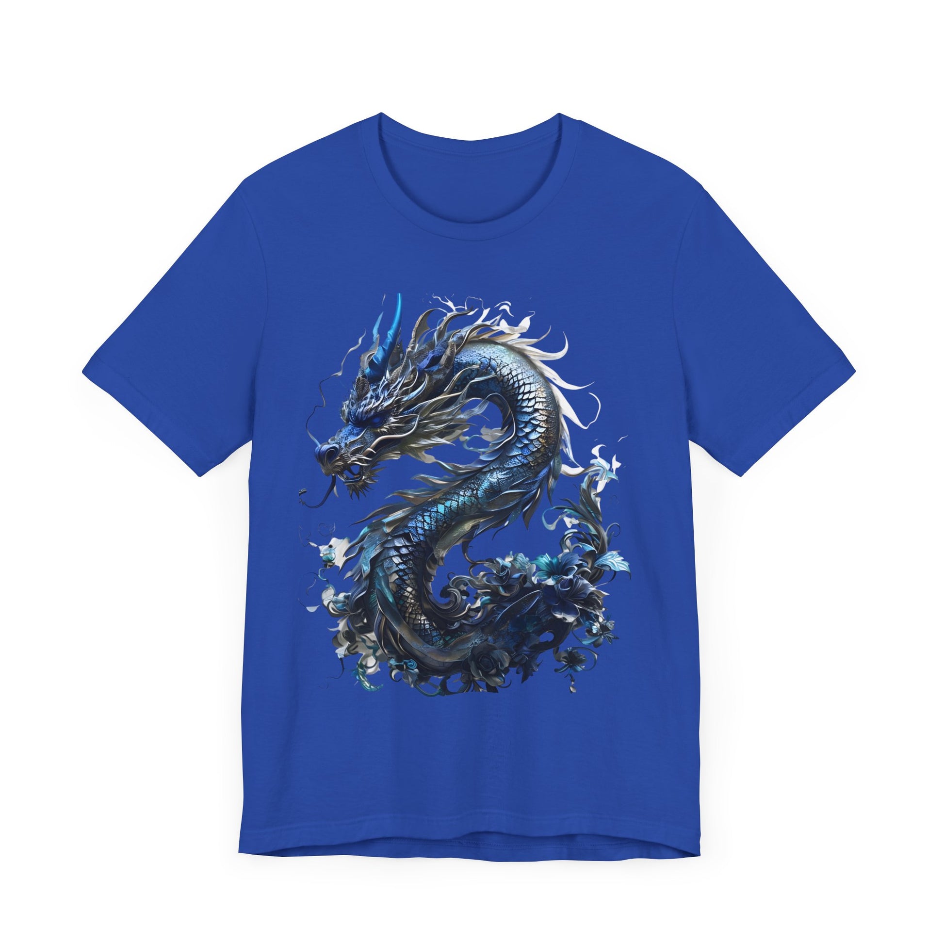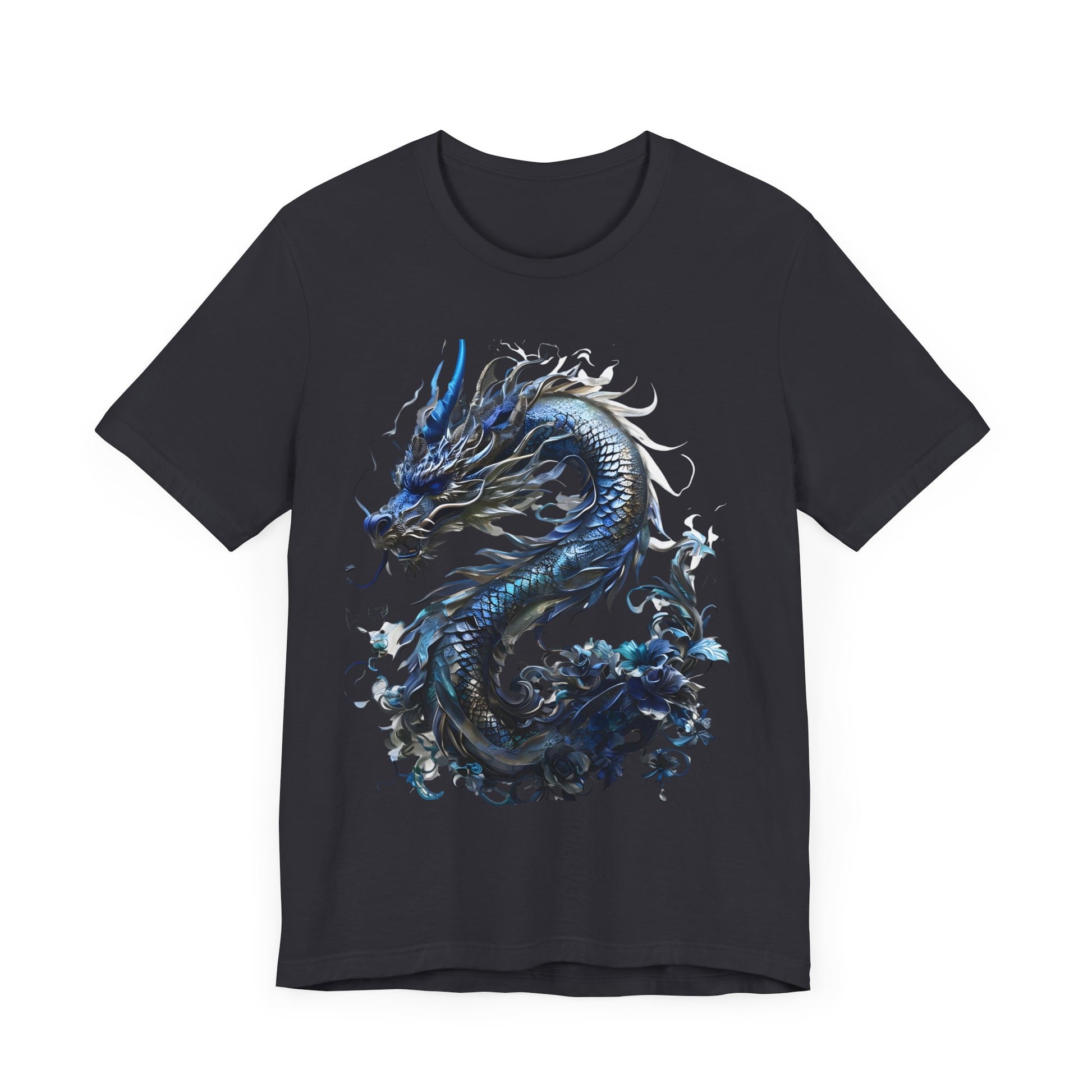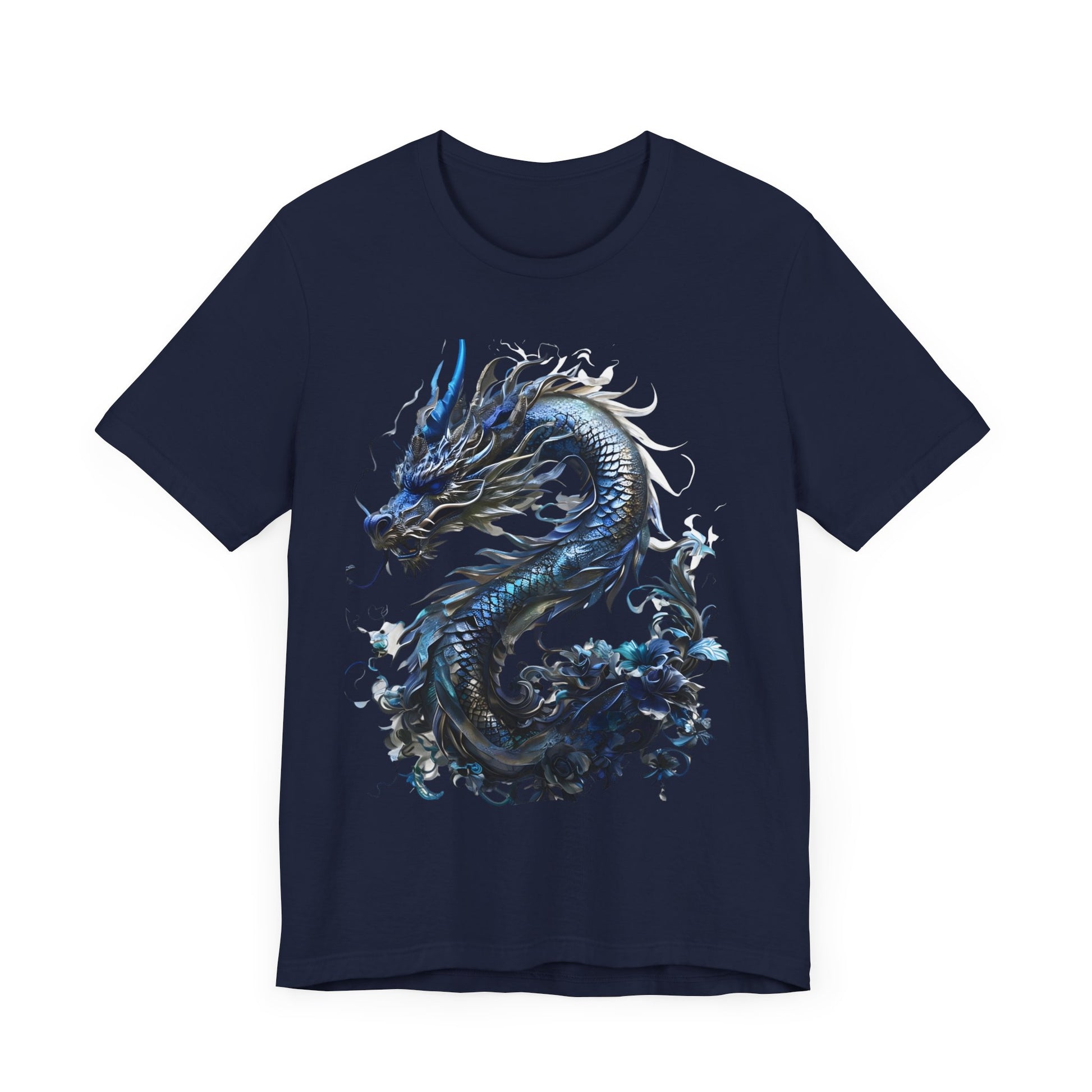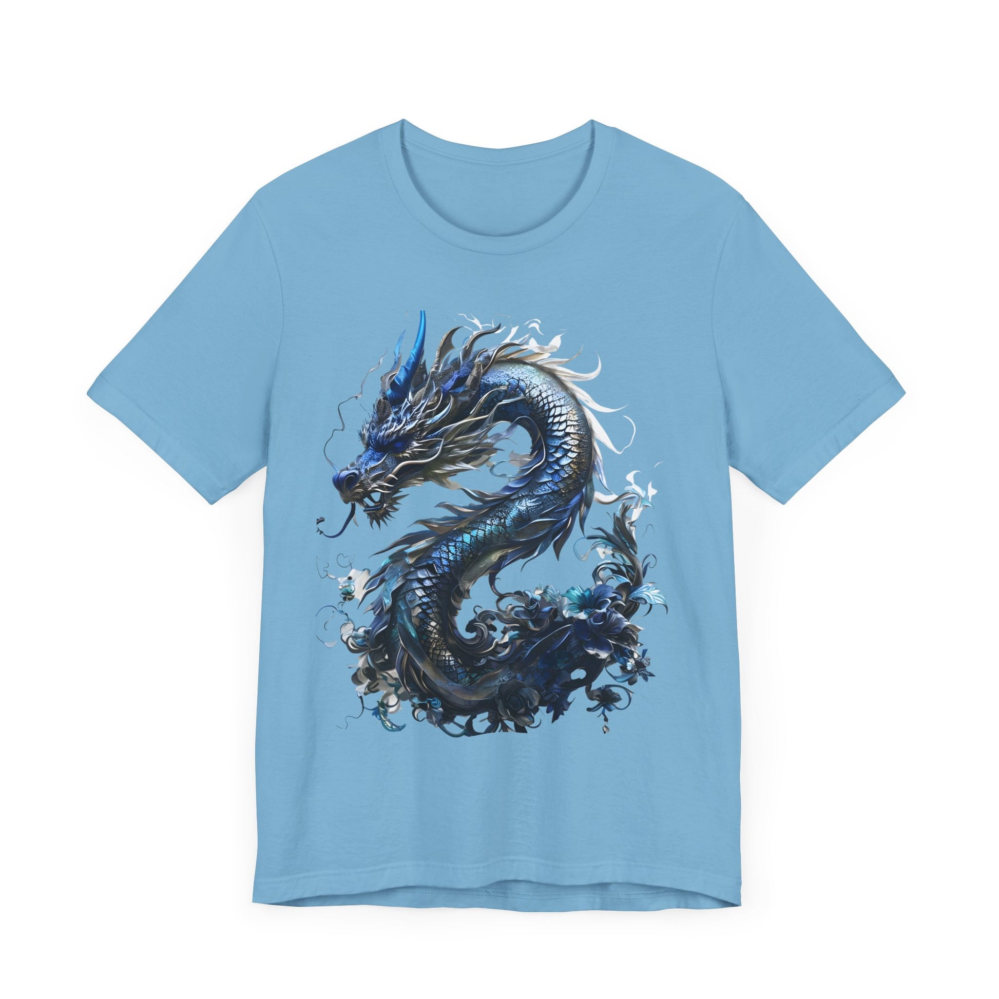 A unisex jersey short sleeve tee featuring a dragon design on the shirt, perfect for adding a touch of fantasy to your everyday wardrobe. Made with 100% Airlume combed and ring-spun cotton, this lightweight fabric is breathable and ideal for active and leisure wear. The retail fit and crew neckline make it suitable for casual and semi-formal settings. Great for dragon enthusiasts and fantasy lovers, perfect for everyday wear or themed events.